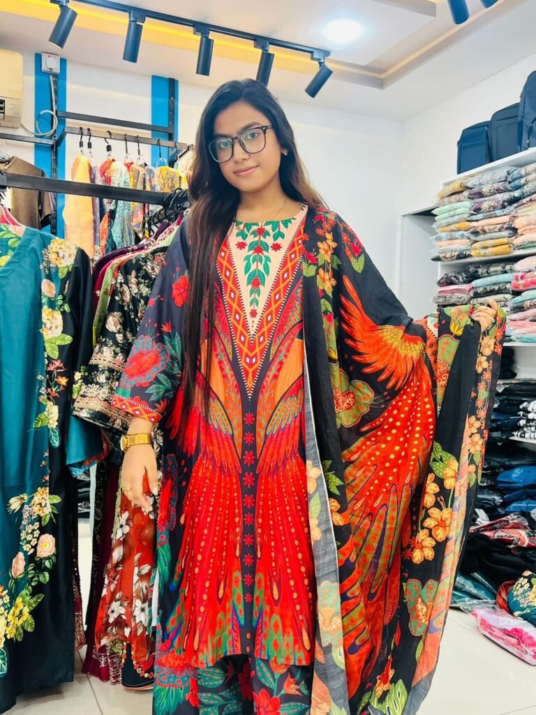 আপনার সাজে যদি চান স্টাইল, আরাম ও রাজকীয় এক ফিনিশিং, তাহলে এই দুবাই সিল্ক থ্রি-পিস হবে আপনার কালেকশনের সেরা সংযোজন।